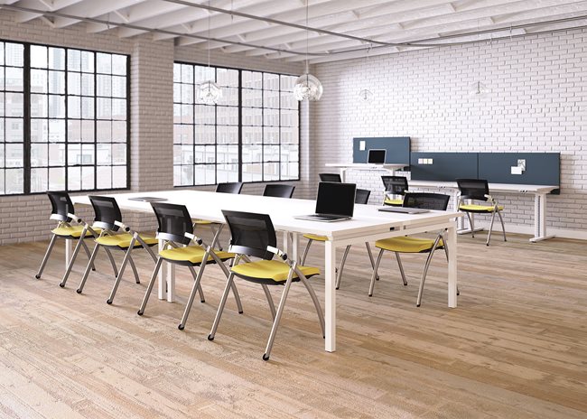 Fixed height powered units feature an integrated trough for easy plug and play capabilities and cord management. Add desktop grommets to further expand power, data, and technology management options. With power and data options within arm’s reach, Alloy facilitates a hub of activity within individual work zones.
