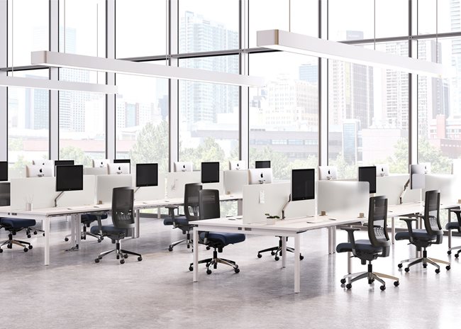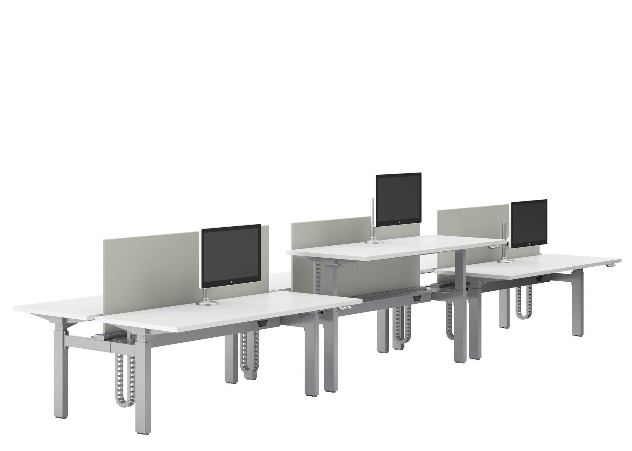 Alloy Benching by National Office Furniture bridges the gap between personal offices and open plan spaces. Alloy Benching offers standard, standing-height, or adjustable-height desk options, multiple-configurations possibilities, base color choices, and various electrical solutions allowing you to easily tailor it to fit your needs.